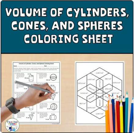 Learning how to find the volume of cylinders, cones, and spheres helps students build strong spatial reasoning and prepares them for more advanced geometry. By identifying each shape’s parts, practicing the formulas, and understanding how these figures relate to one another, students gain confidence and deeper understanding. With plenty of real-world examples volume can become an engaging and meaningful topic in your math classroom.